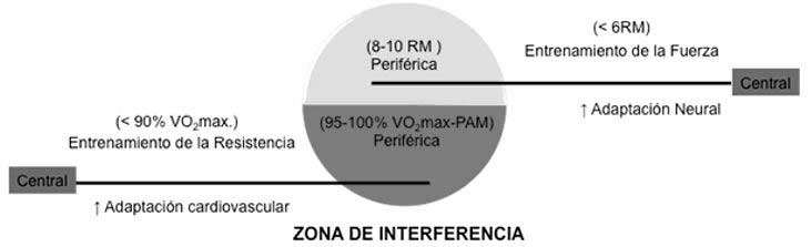 - La posible interferencia entre las adaptaciones producidas por ambos tipos de entrenamientos parecen suceder con entrenamientos prolongados en el tiempo o con altas frecuencias de entrenamiento por microciclo (>3 sesiones a la semana).