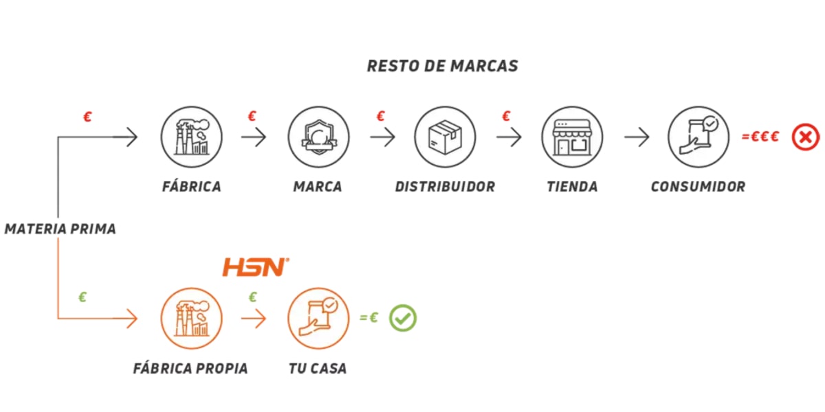 Como puedes comprobar, el número de procesos que intervienen en el resto de las marcas es muy superior al de HSN, pero ¿esto es mejor? ¡Para nada! ¡Es peor!
