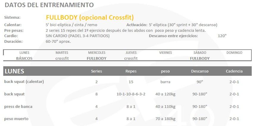 Volvemos a una rutina de 3 días de fullbody, y con el crosfitt como opcional.