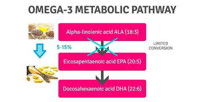O consumo de ómega-3 é particularmente necessário para as pessoas que seguem uma dieta vegetariano, já que melhora a conservação de ALA e, DPA e DHA.