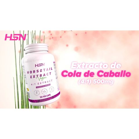 Extracto vegetal de Cola de Caballo de alta concentración: 500mg por cápsula. Con vitamina C y biotina. Apto para dietas veganas y vegetarianas.