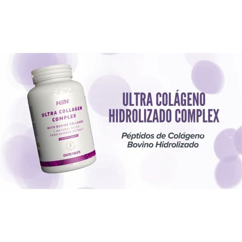 Ultra Colágeno Hidrolizado Complex de EssentialSeries es una fórmula única de HSN desarrollada, en tabletas, a partir de la combinación de una elevada dosis de péptidos de colágeno bovino hidrolizado de alta calidad nutricional, extracto de bambú con 21mg/dosis diaria de silicio natural, vitaminas hidrosolubles y liposolubles, y las mejores sales minerales con actividad sinérgica.