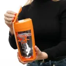 Este diseño novedoso mezcla un cuerpo transparente y un recubrimiento exterior en color naranja ¡nuestro favorito! Presenta también en su frontal nuestro slogan We Are Nutrition! en color gris.