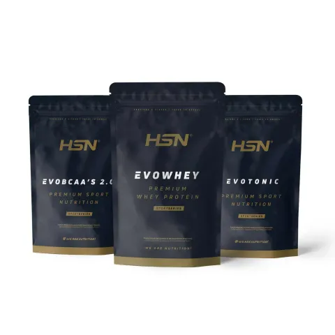 - Pack peri-entrenamiento con 3 productos SportSeries: Evowhey 2 kg (proteína de suero concentrada), Evobcaa’s 1 kg (BCAAs 12:1:1 con L-Glutamina Kyowa®) y Evotonic 1 kg (bebida isotónica con carbohidratos, sales minerales y PeptoPro®).