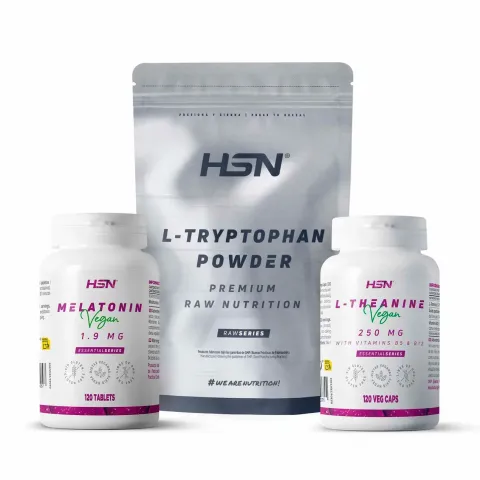- Pack nocturno con 3 complementos: Melatonina 1,9 mg (120 tabs), L-Triptófano en polvo 150 g y L-Teanina 250 mg (120 cápsulas vegetales).