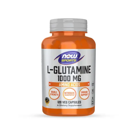 L-Glutamina 1000mg de Now Foods es un complemento alimenticio a base de L-glutamina en cápsulas vegetales.