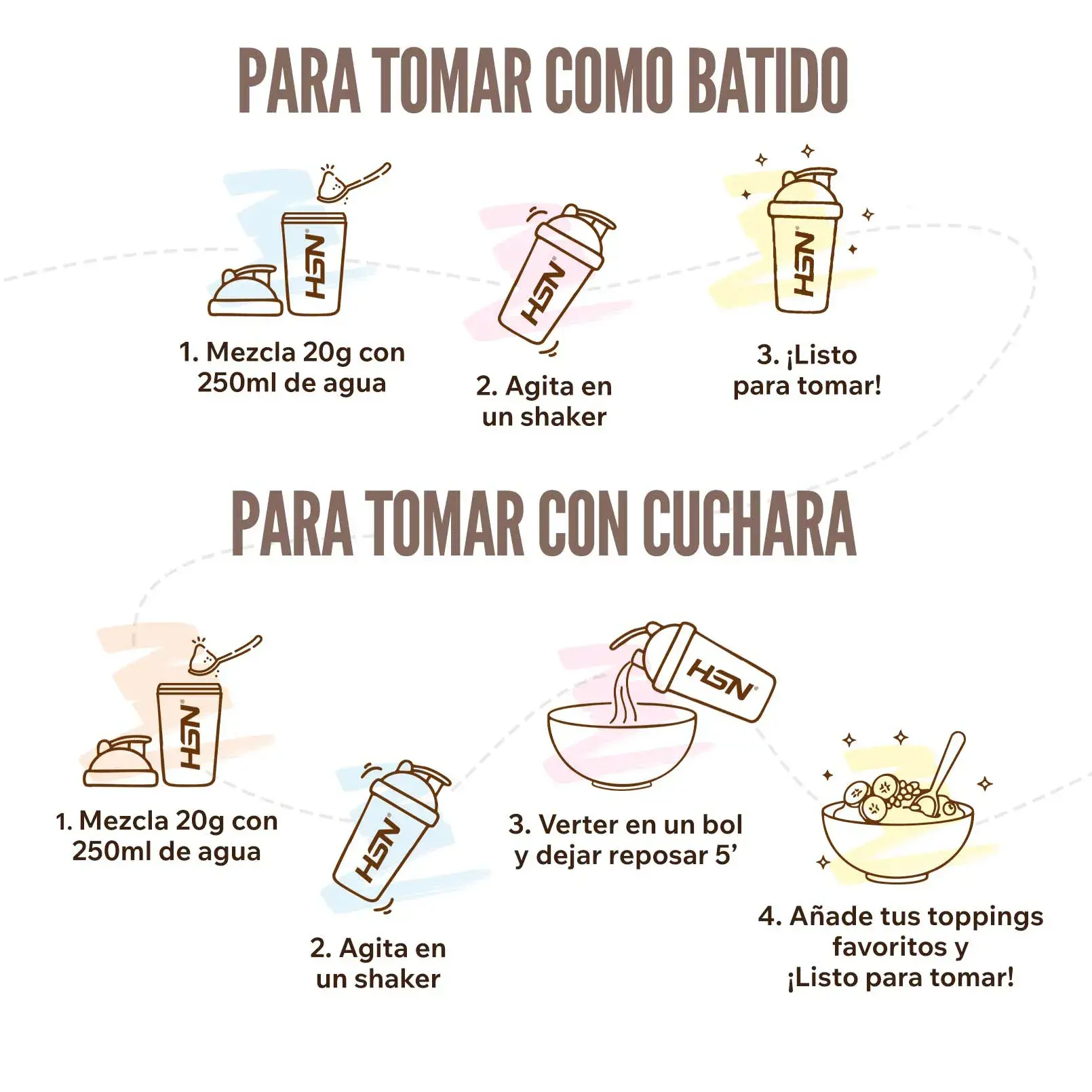 Mezclar 1 dosificador de 20ml (20g aprox.) con 250ml de agua, tomar antes de las comidas.