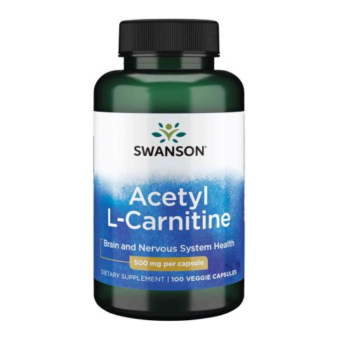 Acetil L-Carnitina en cápsulas vegetales. 500mg por servicio. ¡Calidad Swanson!