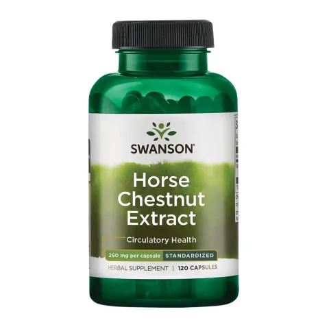 Extracto de Castaño de Indias 250mg de Swanson es un complemento alimenticio en cápsulas elaborado a partir de extracto de semilla de Aesculus hippocastanum, estandarizado en escina, una mezcla de saponinas característica de la planta que denota la calidad de desarrollo del complemento alimenticio.