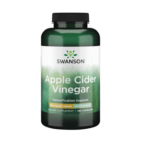 Vinagre de Sidra de manzana 625mg de Swanson es un complemento alimenticio en cápsulas hecho a base de polvo de vinagre de sidra de manzana.
