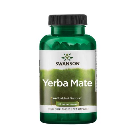 Yerba Mate 125mg de Swanson es un complemento alimenticio elaborado con concentrado de Yerba Mate (Ilex paraguariensis) en cápsulas de alta concentración.