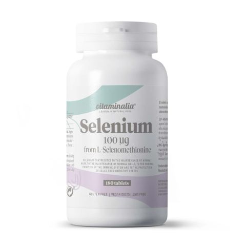 Selenio 100mcg - 180 Tabs de Vitaminalia es un complemento alimenticio en tabletas, elaborado a base de L-Seleniometionina, una forma del oligoelemento Selenio.