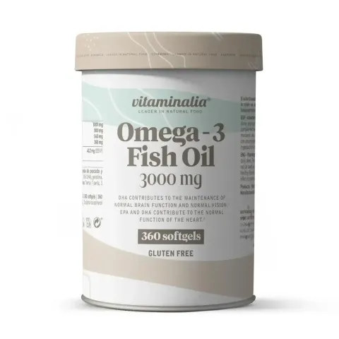 Omega 3 3000mg de Vitaminalia es un complemento alimenticio en perlas a base de aceite de pescado estandarizado en ácidos grasos Omega 3, 18% EPA (Ácido Eicosapentaenoico) y DHA (Ácido Docosahexaenoico).