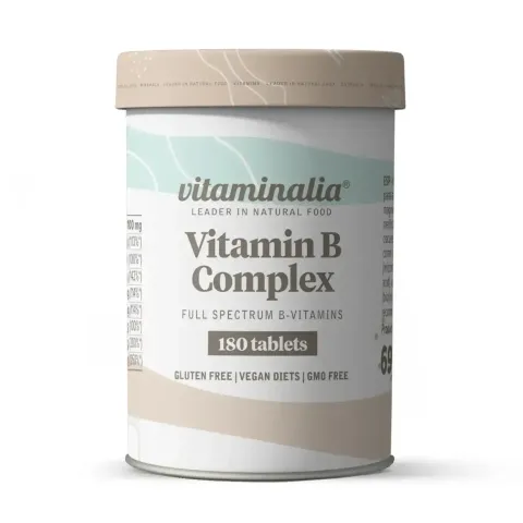 Vitamina B Complex de Vitaminalia es un complemento alimenticio en tabletas, a base de vitaminas del grupo B.