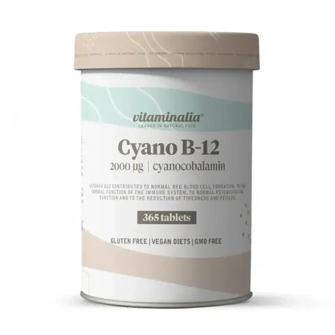 Vitamina B12 (Cianocobalamina) 2000mcg de Vitaminalia es un complemento alimenticio en forma de tabletas elaborado a base de vitamina B12 en la forma de cianocobalamina.