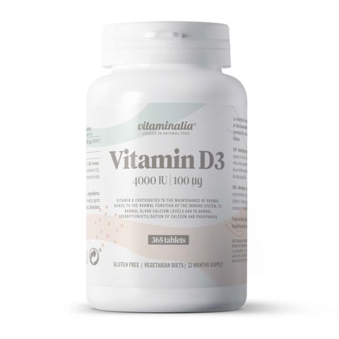 Vitamina D3 4000UI de Vitaminalia es un complemento alimenticio en tabletas vegetarianas a base de Colecalciferol (Vitamina D3).