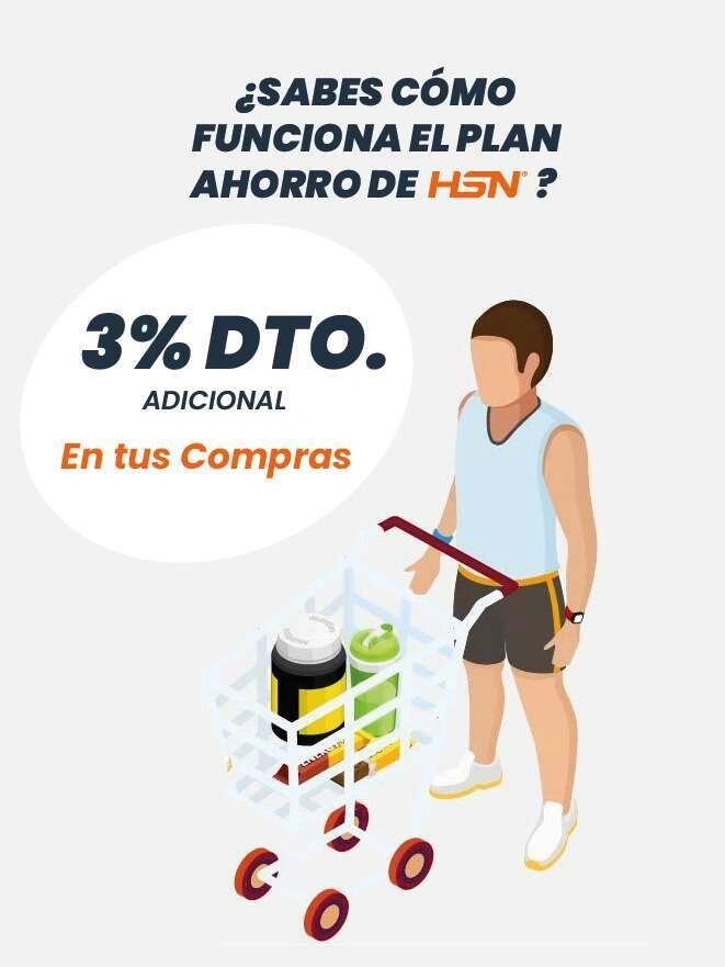 Para que tú sigas ahorrando y disfrutando de los mejores productos de nutrición deportiva y alimentación saludable a un precio inigualable, hemos creado el plan ahorro para que siempre tengas un 3% de descuento adicional en tus compras.