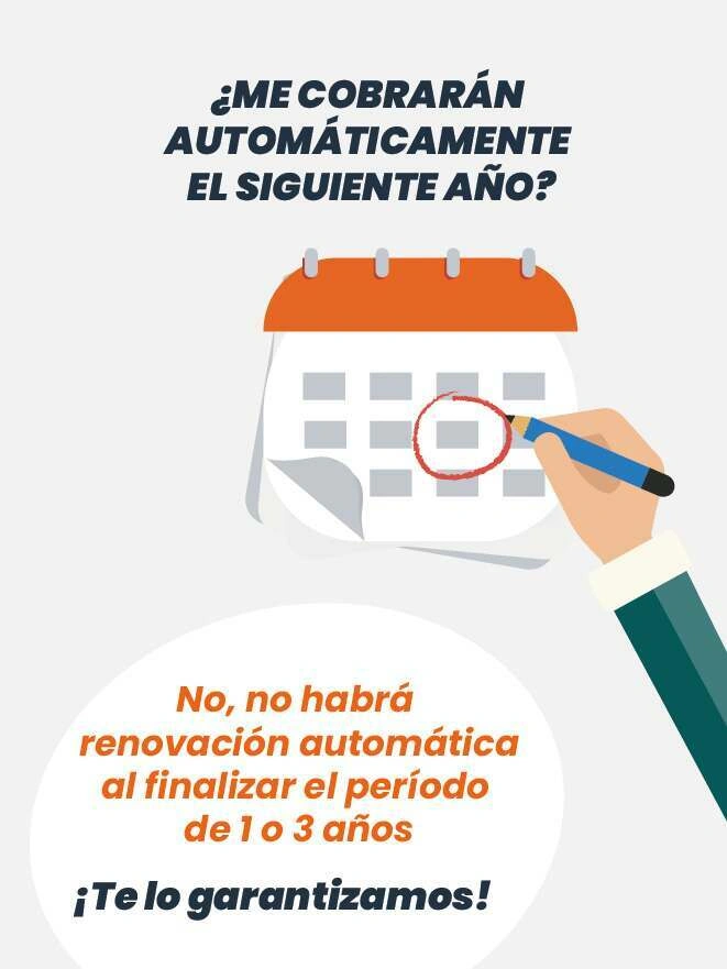 No, no habrá renovación automática al finalizar el período de 1 o 3 años de tu suscripción, tu decides si volver a beneficiarte de los descuentos otro tiempo adicional. ¡Te lo garantizamos!