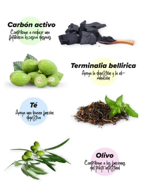 Son complementos alimenticios compuestos de plantas como la cayena o el jengibre, enzimas vegetales ricas en calcio y levadura, y el efectivo carbón activo*, con propiedades que ayuda a reducir el exceso de flatulencias.